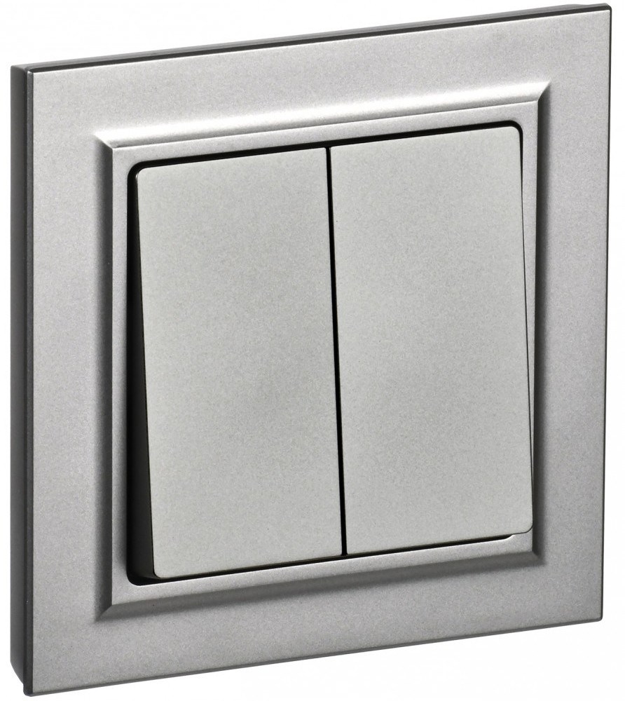 IEK Brite сталь выключатель 2- клавишный. 10А в сборе BR-V20-0-10-K46-F