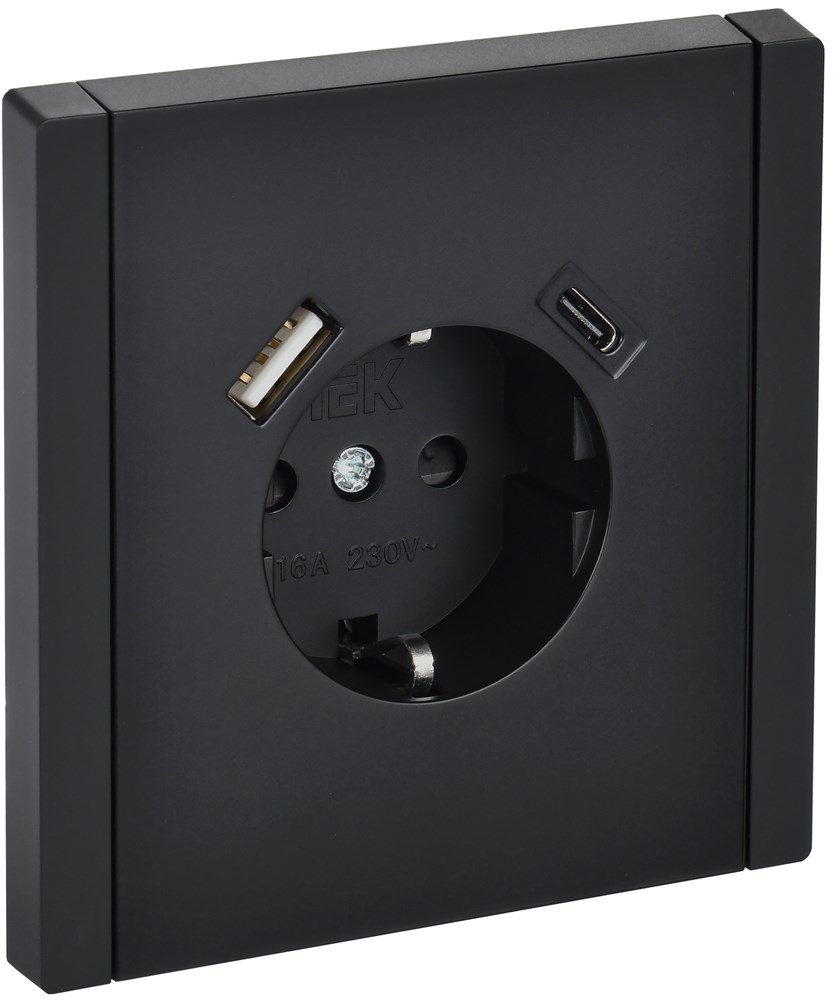 IEK FORTE&PIANO Черный Розетка с/з со шт винтовое крепление 16А USB A+C 18Вт FP147 FP-R14-16-U22-018-K02