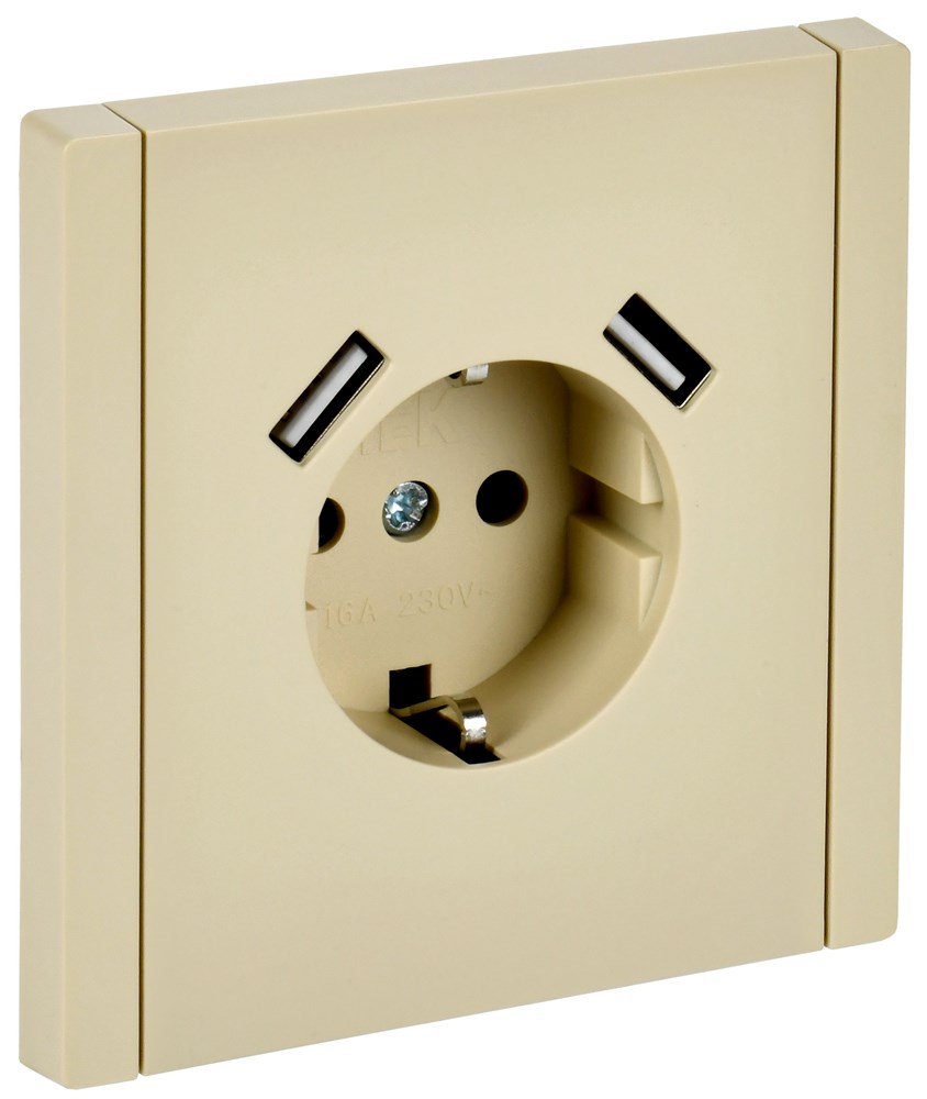 IEK FORTE&PIANO Ваниль Розетка с/з со шт винтовое крепление 16А USB A+A 3,1А FP445 FP-R14-16-U21-D31-K10
