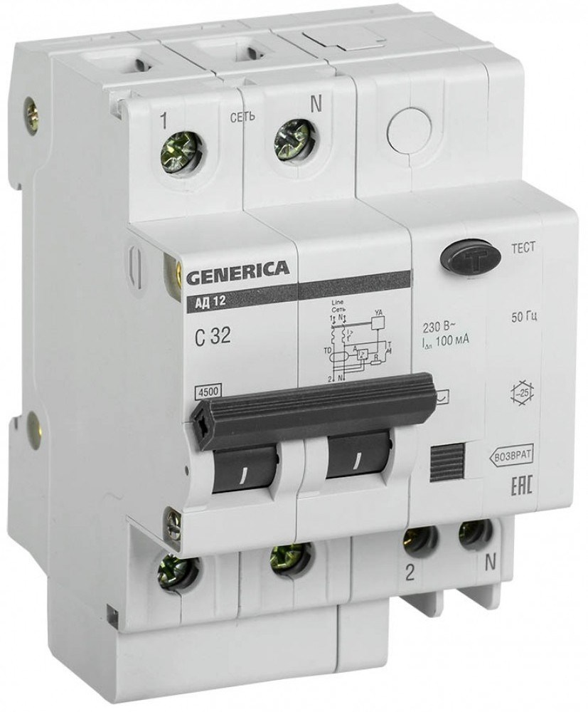 IEK GENERICA Диф. автомат АД12 2Р 32А 100мА MAD15-2-032-C-100