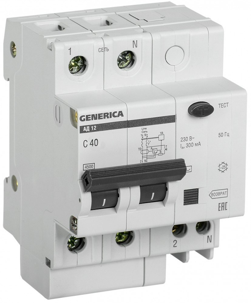 IEK GENERICA Диф. автомат АД12 2Р 40А 300мА MAD15-2-040-C-300