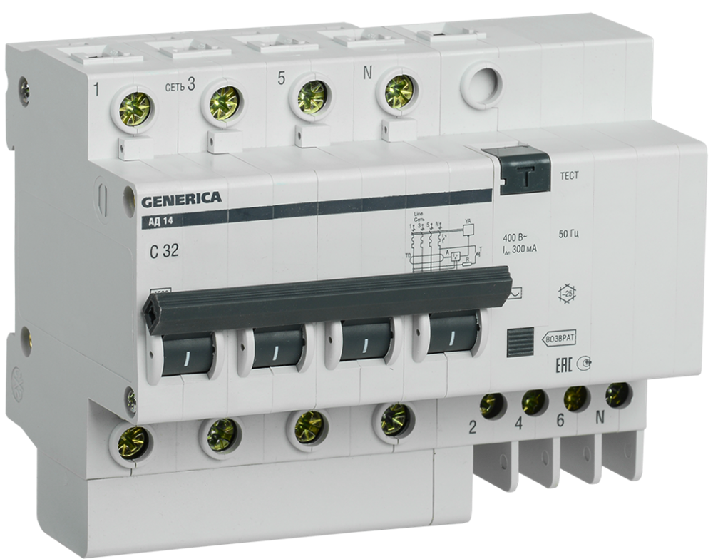 IEK GENERICA Диф. автомат АД14 4Р 32А 300мА MAD15-4-032-C-300