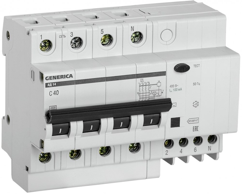IEK GENERICA Диф. автомат АД14 4Р 40А 100мА MAD15-4-040-C-100