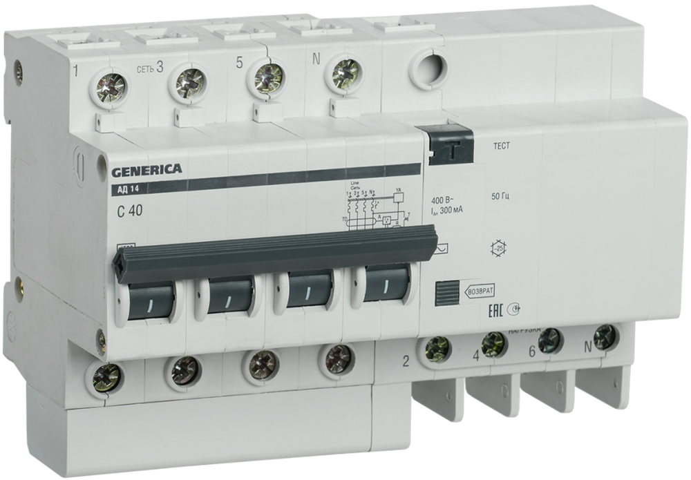 IEK GENERICA Диф. автомат АД14 4Р 40А 300мА MAD15-4-040-C-300