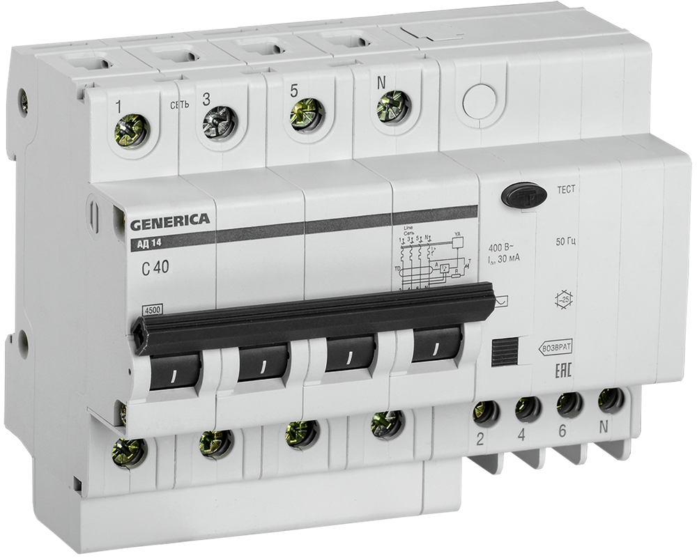 IEK GENERICA Диф. автомат АД14 4Р 40А 30мА MAD15-4-040-C-030