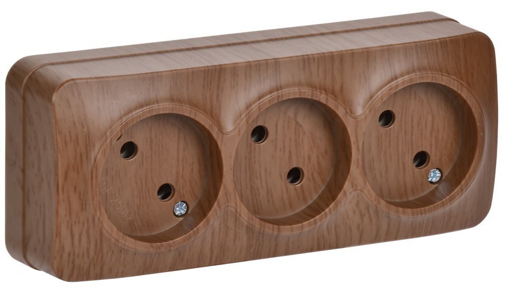 IEK GLORY РС23-2-ХД Розет. 3-ая без з/к о/у 10А GLORY дуб ERH30-K24-10