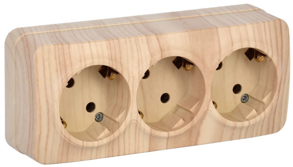 IEK GLORY РС23-3-ХС Розет. 3-ая с з/к о/у 16А GLORY сосна ERH31-K34-16