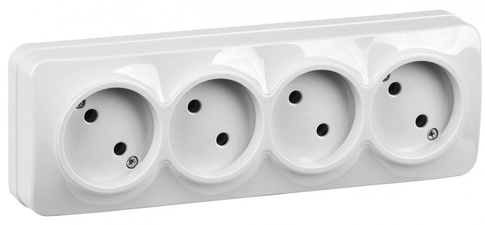 IEK GLORY РС24-2-ХБ Розет. 4-ая без з/к о/у 10А GLORY белый ERH40-K01-10