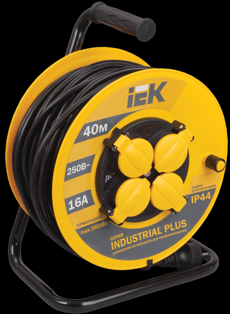 IEK INDUSTRIAL PLUS Катушка УК40 с т/з 4 места 2Р+PЕ/40метров 3х1,5мм2 IP44 "Industrial plus" WKP15-16-04-40-44
