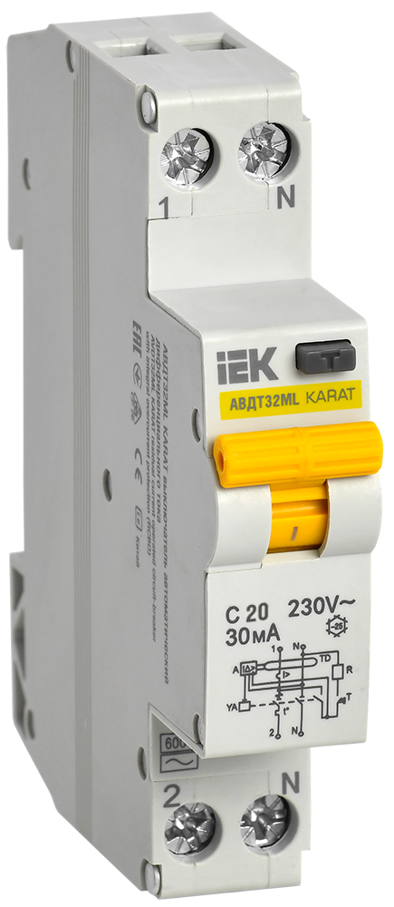 IEK KARAT Автоматический выключатель диф. тока АВДТ32МL С20 30мА KARAT MVD12-1-020-C-030