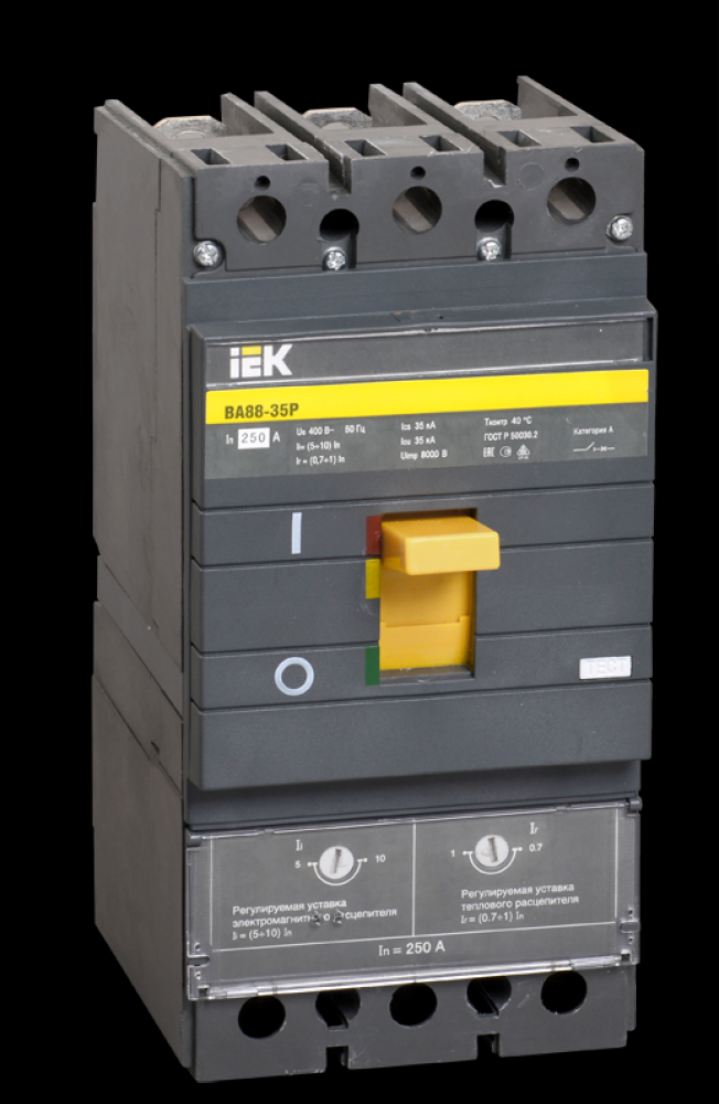 Автоматические выключатели ВА88 предназначены для проведения тока в нормальном режиме и отключения тока при коротких замыканиях, перегрузке, недопустимых снижениях напряжения, а также для оперативных включений и отключений участков электрических цепей и рассчитаны для эксплуатации в электроустановках с номинальным рабочим напряжением до 400 В и на номинальные токи от 12,5 до 1600 А. Соответствуют требованиям ГОСТ Р 50030.2.