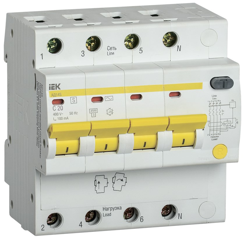 IEK KARAT Дифференциальный автоматический выключатель АД14S 4Р 20А 100мА MAD13-4-020-C-100