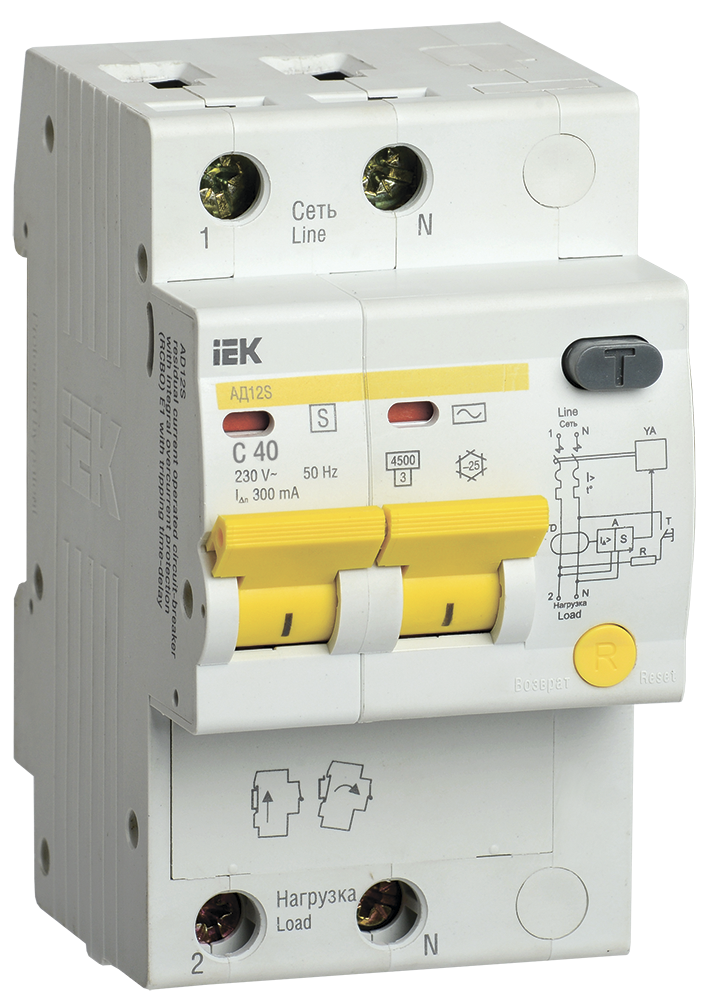 IEK KARAT Выключатель автоматический дифференциальный АД12S 2Р 40А 300мА MAD13-2-040-C-300
