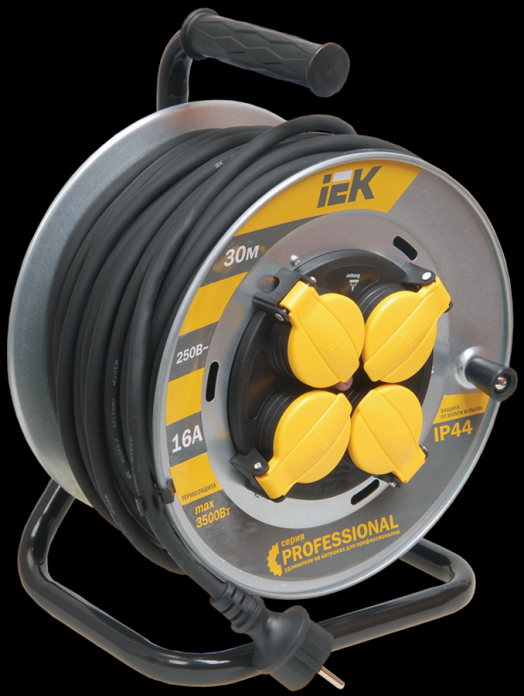 Удлинитель на катушке позволяет легко подключить удаленное от стационарной розетки электрооборудование. Незаменим на строительной площадке, на садовом участке, в парках с аттракционами, в промышленности и в быту.