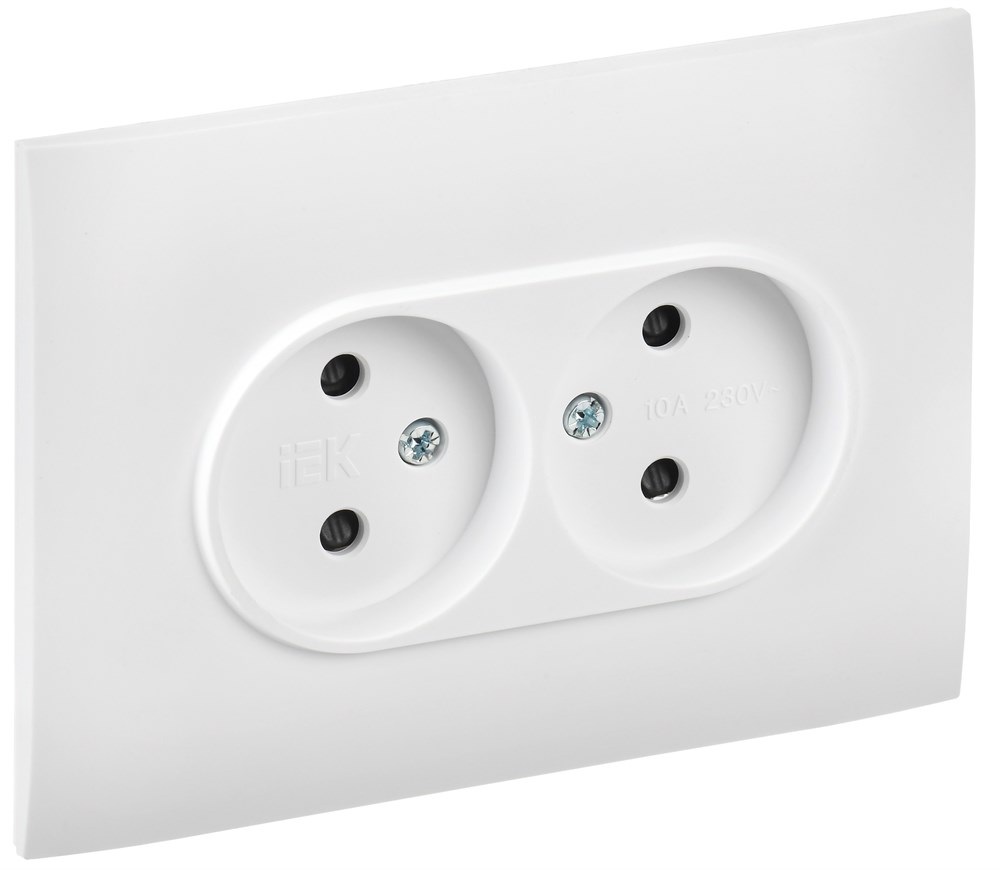 IEK SKANDY Арктический белый Розетка 2-ая б/з с защитными шторками 10А в сборе SK-R09W SK-R23-10-K01-F