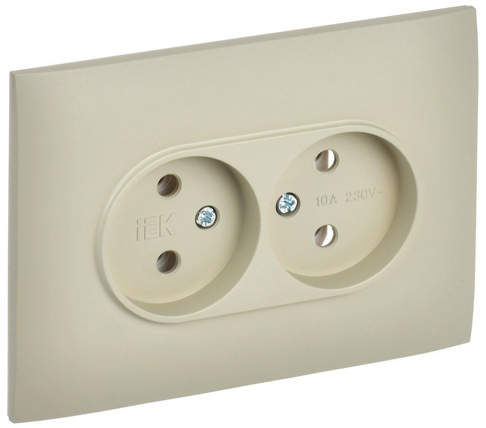IEK SKANDY Бежевый Розетка 2-ая б/з 10А в сборе SK-R10B SK-R20-10-K10-F