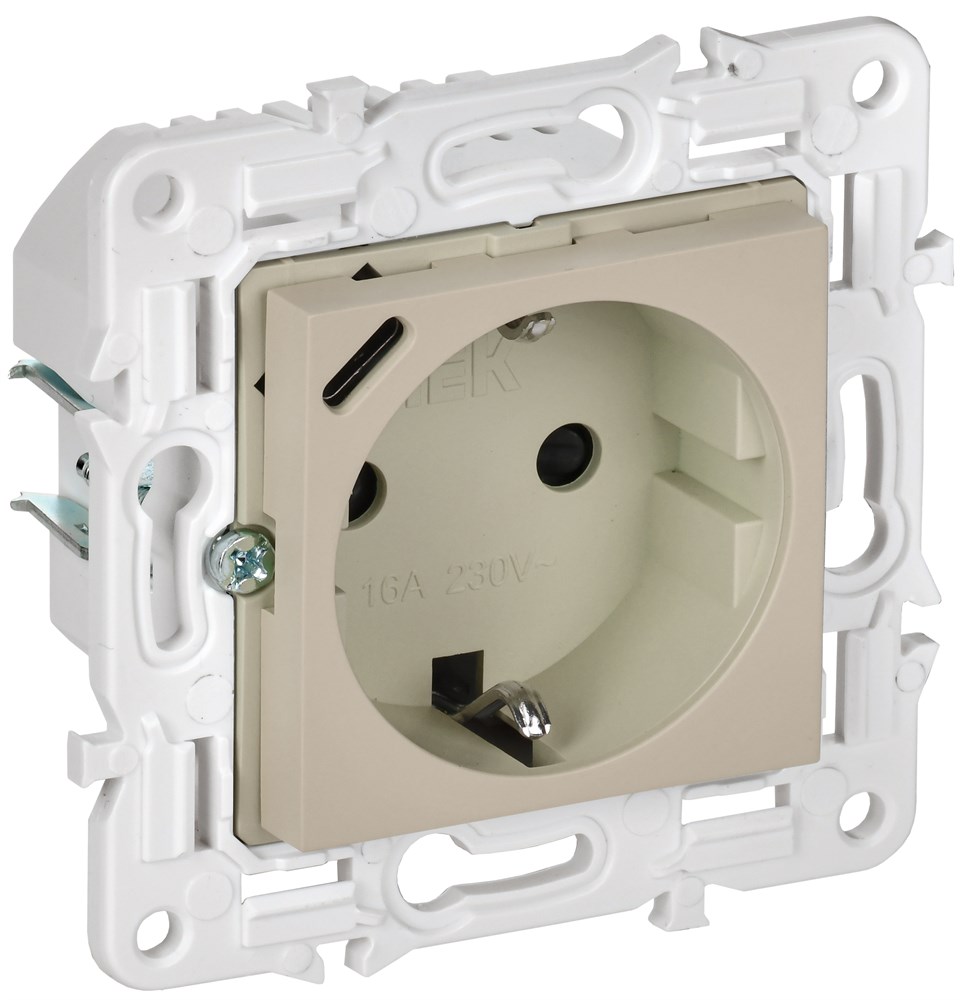 IEK SKANDY Бежевый Розетка с/з с защитными шторками 16А с USB C 18Вт SK-R17B SK-R14-16-U14-018-K10