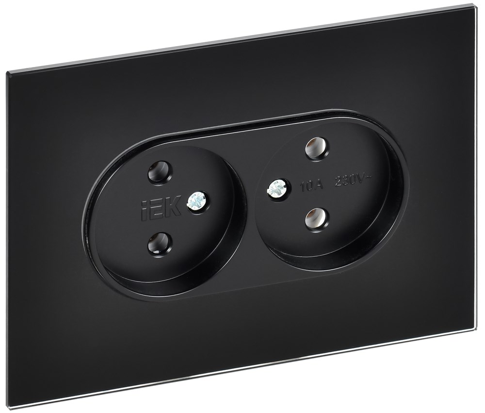 IEK SKANDY Черный Розетка 2-ая б/з для плоской вилки 10А SK-R03Bl SK-R20-10-K02