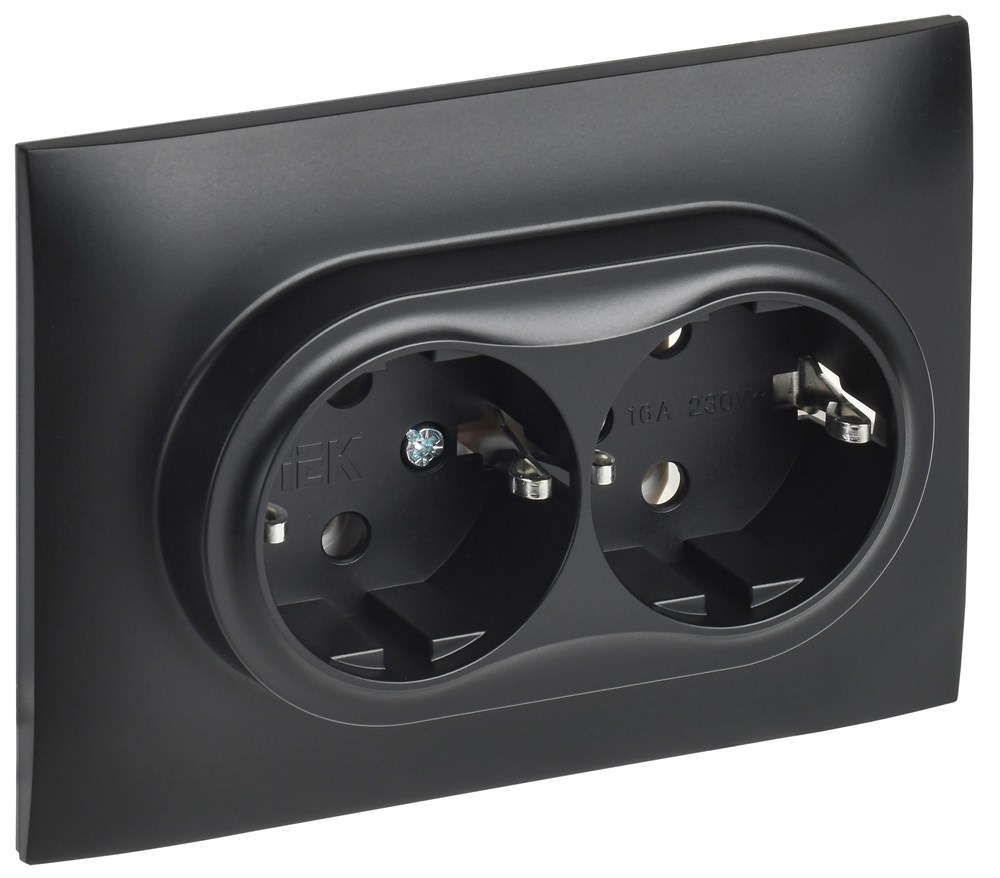 IEK SKANDY Черный Розетка 2-ая с/з без защитных шторок 16А в сборе SK-R08Bl SK-R21-16-K02-F