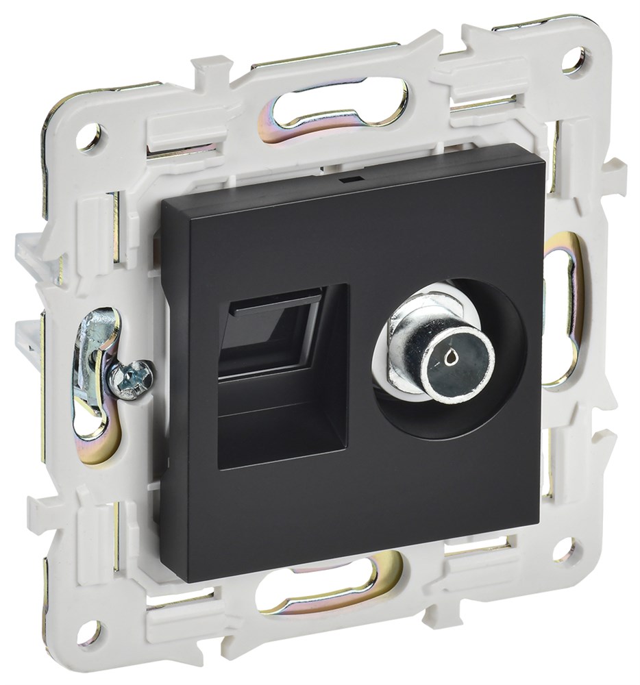 IEK SKANDY Черный Розетка двойная TV+RJ45 кат.5E SK-A14Bl SK-AK20-1-K02
