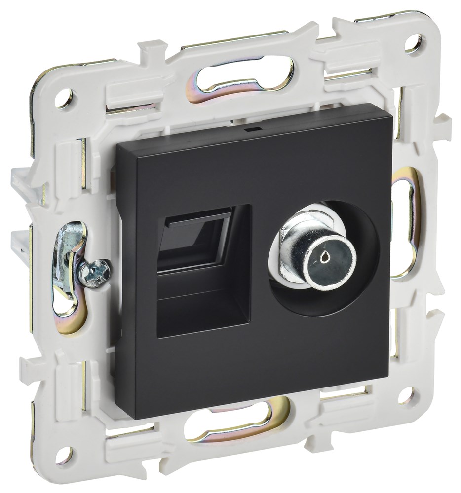 IEK SKANDY Черный Розетка двойная TV+RJ45 кат.6E SK-A15Bl SK-AK20-2-K02