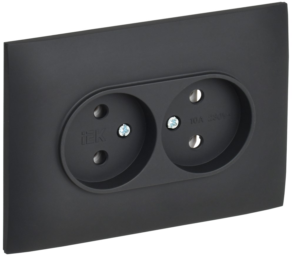 IEK SKANDY Графит Розетка 2-ая б/з 10А в сборе SK-R10G SK-R20-10-K53-F