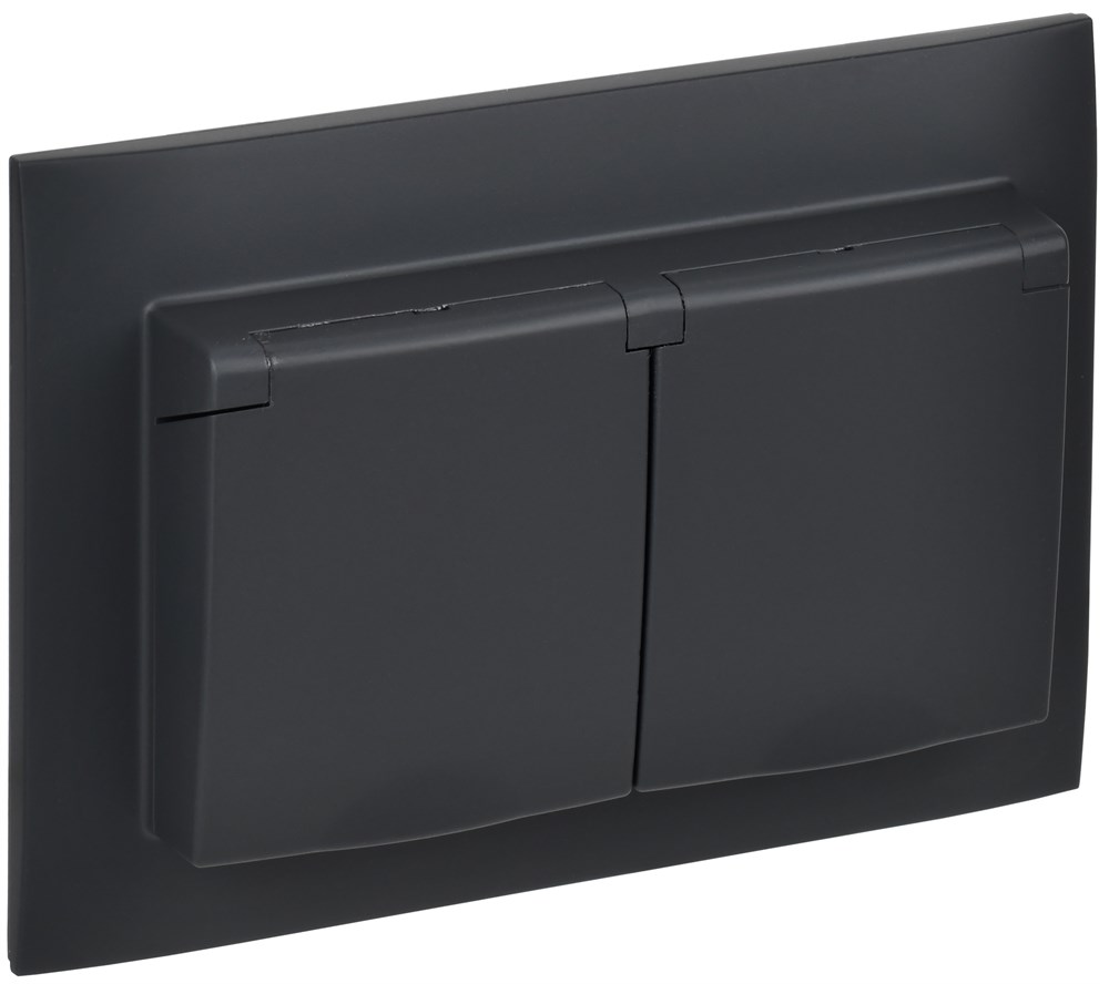 IEK SKANDY Графит Розетка 2-ая с/з с крышкой 16А в сборе IP44 SK-R12G SK-R26-16-44-K53-F