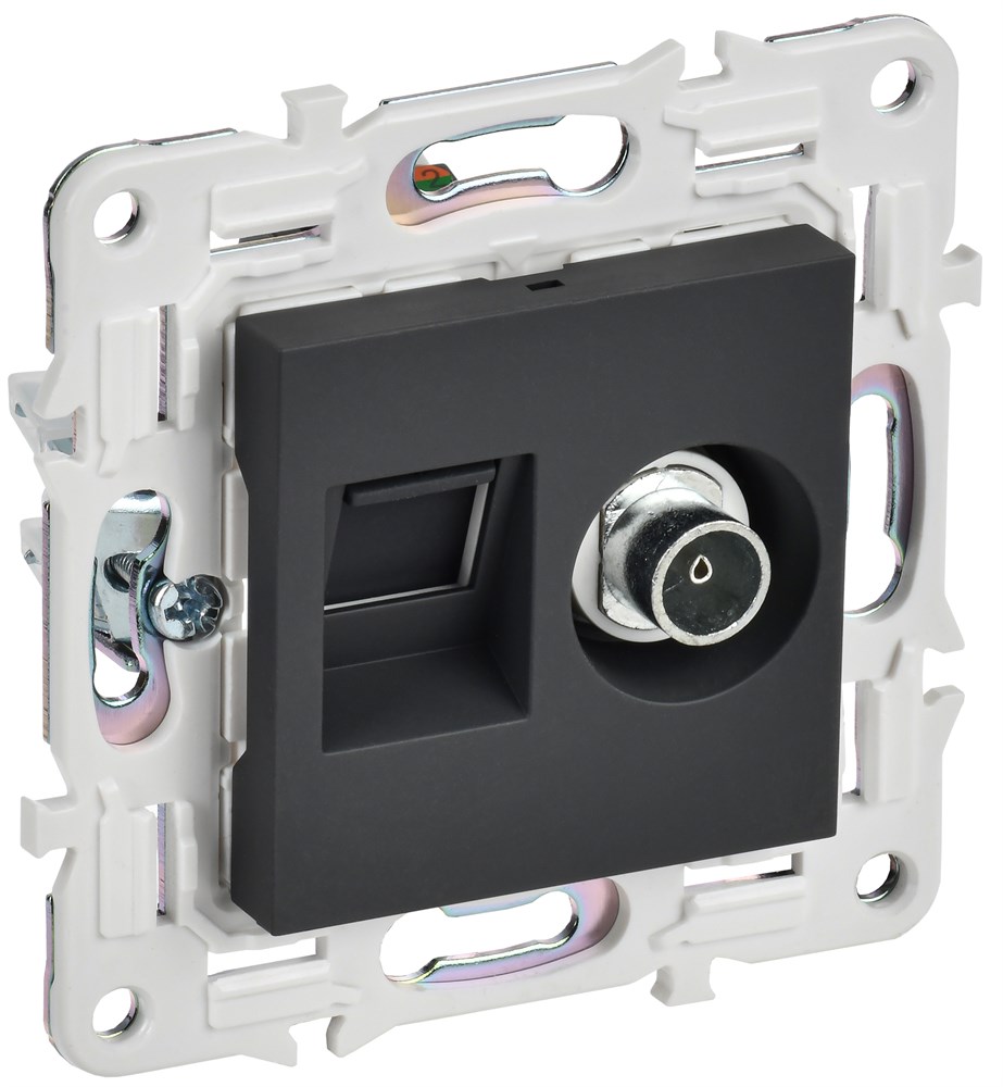 IEK SKANDY Графит Розетка двойная TV+RJ45 кат.5E SK-A14G SK-AK20-1-K53