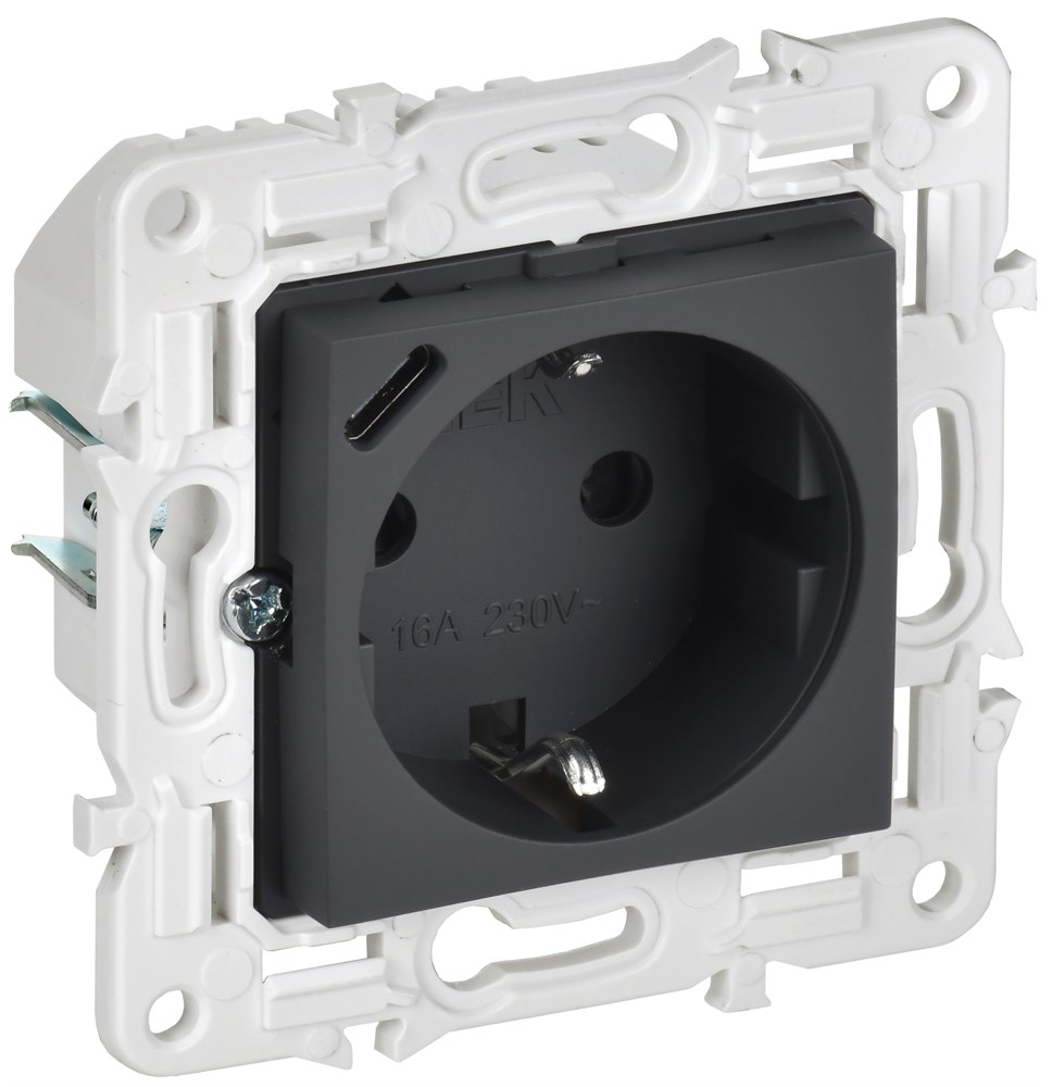 IEK SKANDY Графит Розетка с/з с защитными шторками 16А с USB C 18Вт SK-R17G SK-R14-16-U14-018-K53