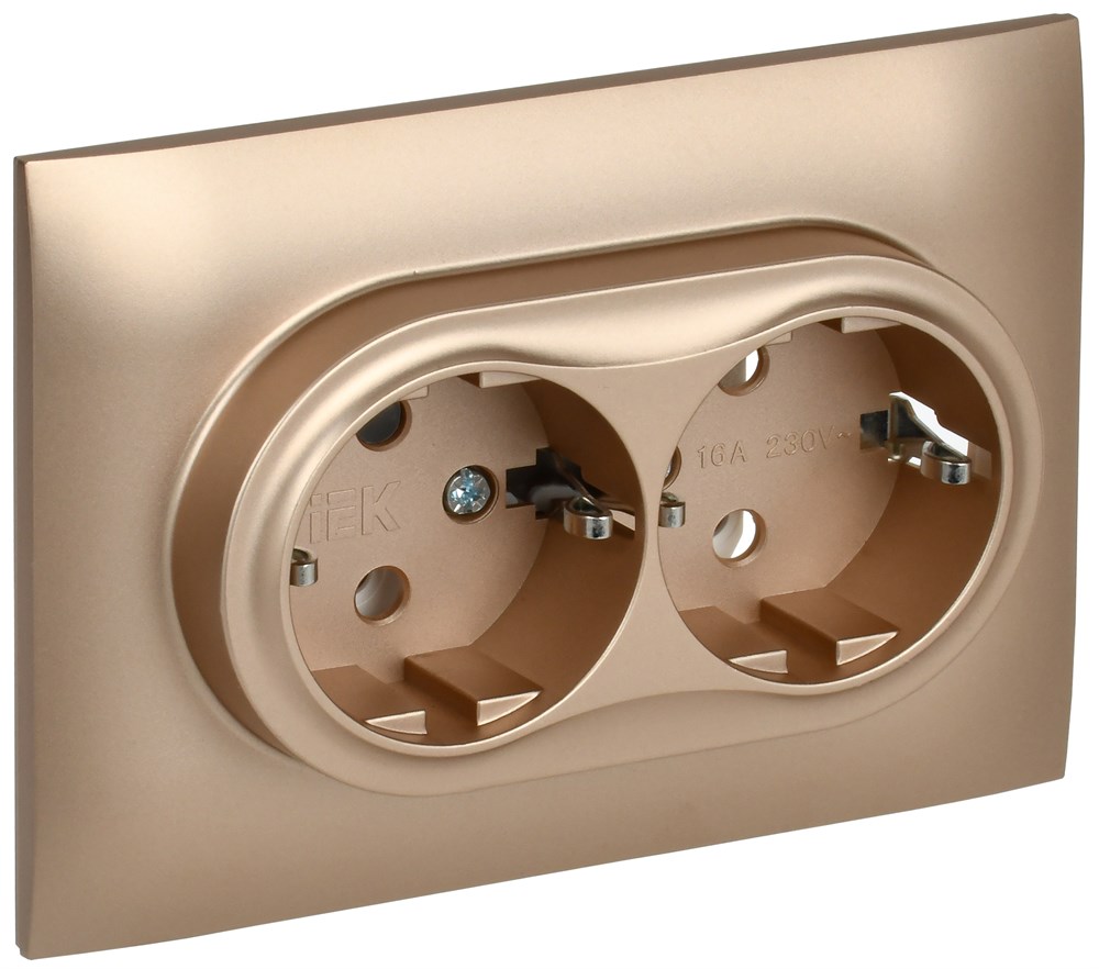 IEK SKANDY Песочный Розетка 2-ая с/з без защитных шторок 16А в сборе SK-R08Sa SK-R21-16-K98-F