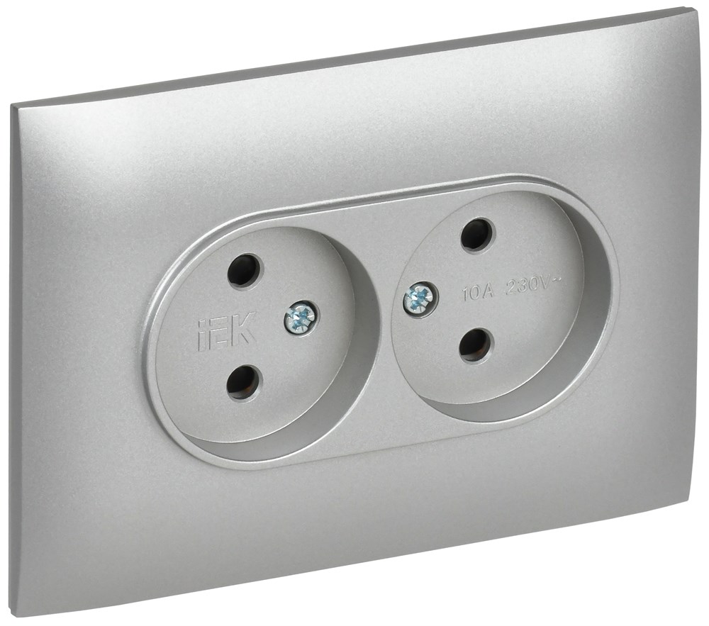 IEK SKANDY Серебряный Розетка 2-ая б/з с защитными шторками 10А в сборе SK-R09S SK-R23-10-K23-F