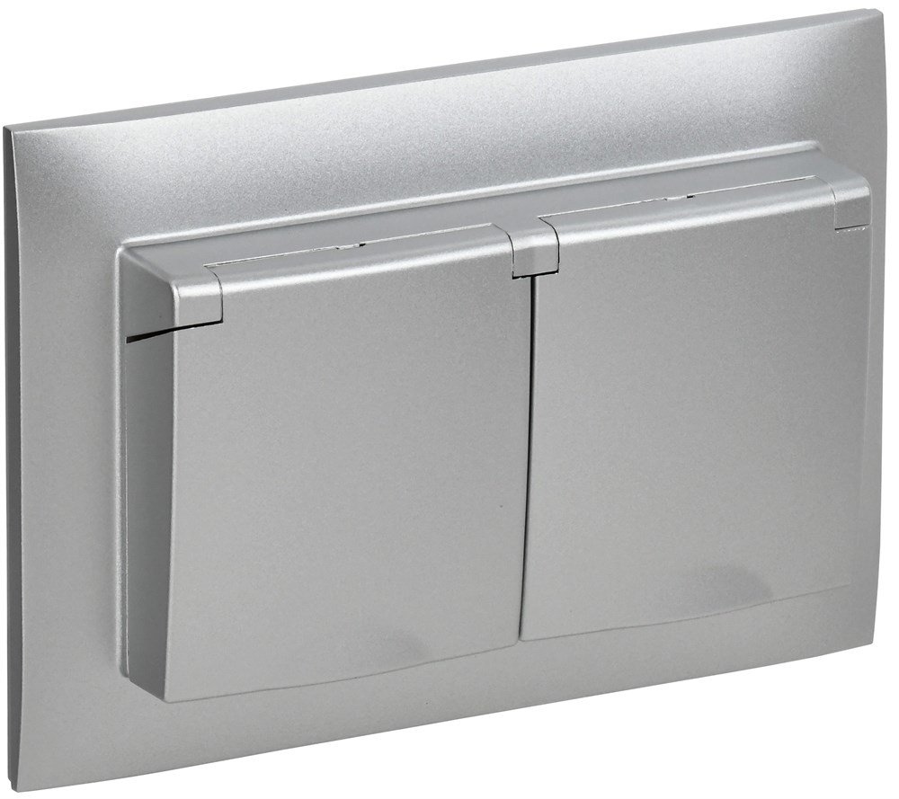 IEK SKANDY Серебряный Розетка 2-ая с/з с крышкой 16А в сборе IP44 SK-R12S SK-R26-16-44-K23-F