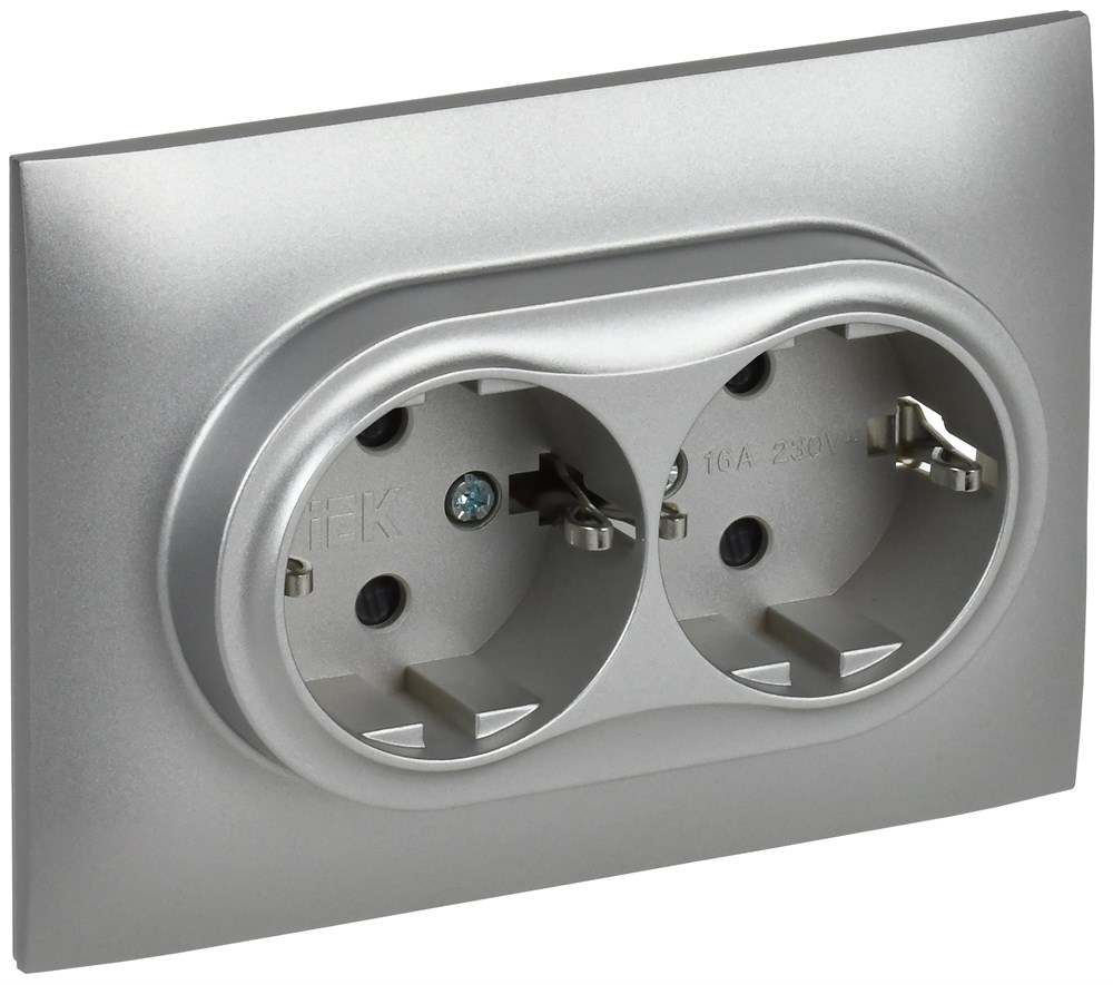 IEK SKANDY Серебряный Розетка 2-ая с/з с защитными шторками 16А в сборе SK-R07S SK-R24-16-K23-F