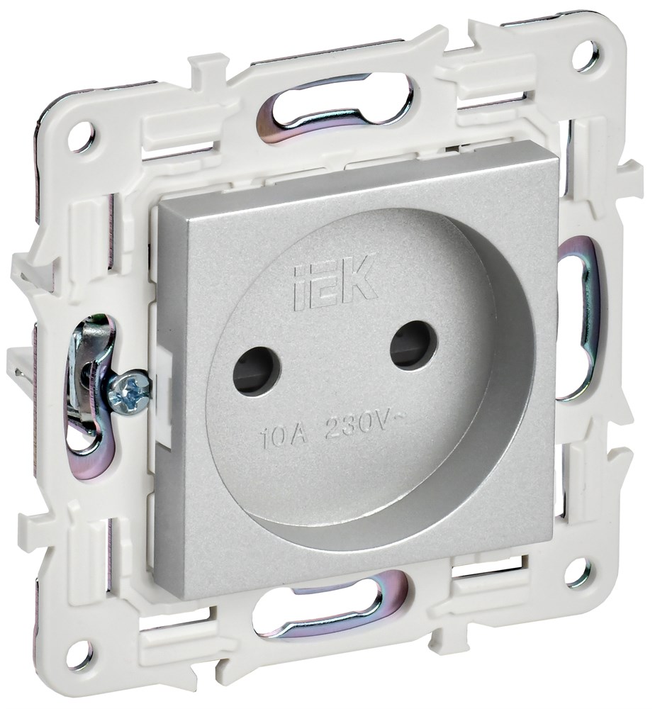 IEK SKANDY Серебряный Розетка б/з с защитными шторками 10А SK-R01S SK-R13-10-K23