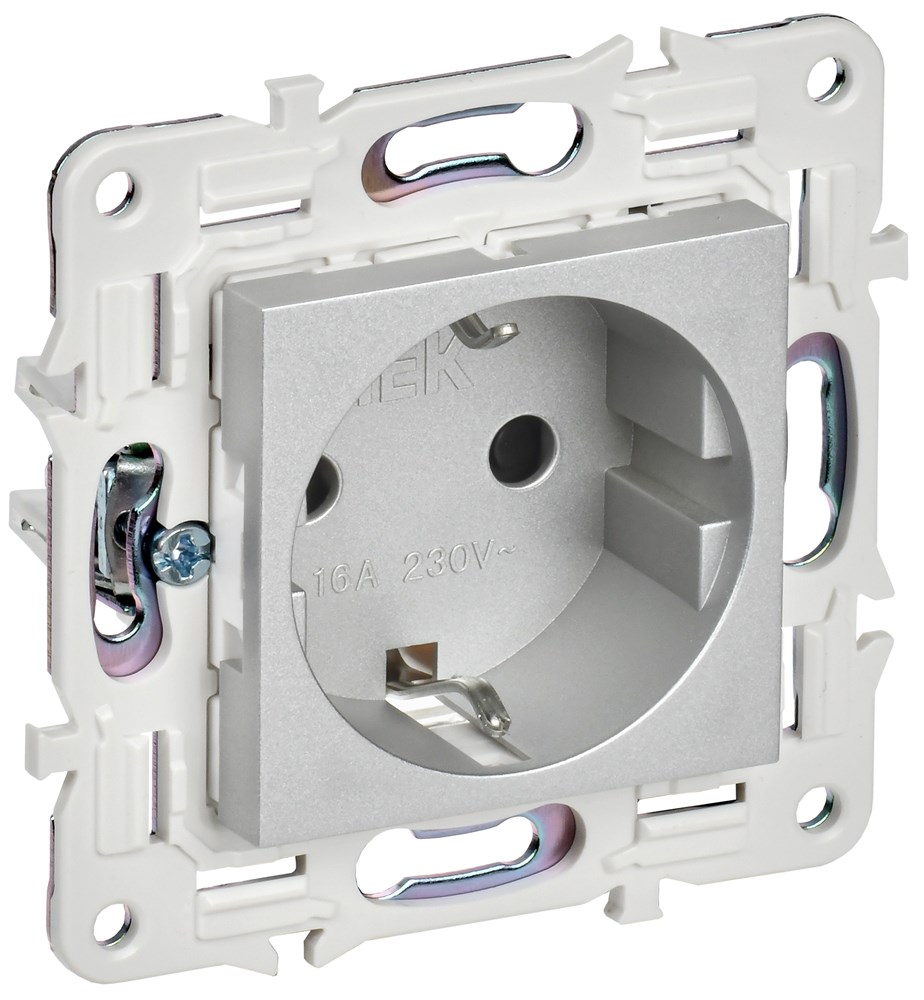 IEK SKANDY Серебряный Розетка с/з с защитными шторками 16А б/к SK-R06S SK-R14-16-1-K23