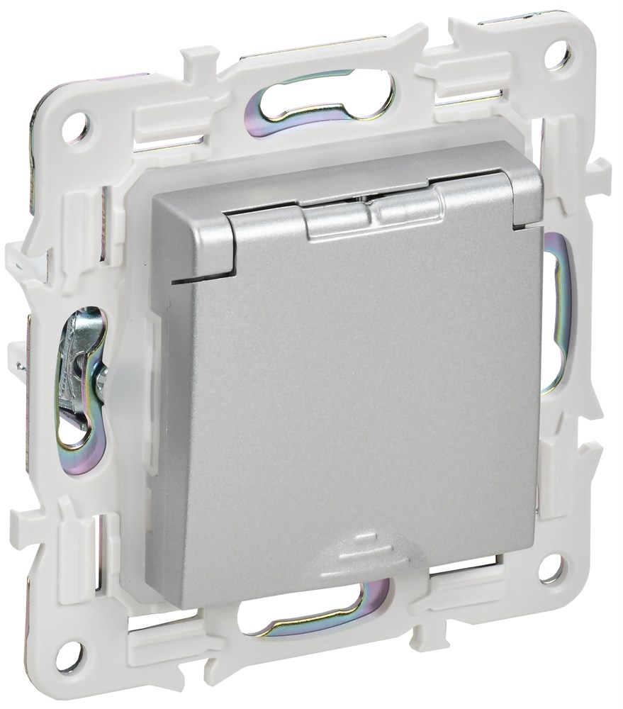 IEK SKANDY Серебряный Розетка с/з с защитными шторками и крышкой 16А IP44 SK-R11S SK-R16-16-44-K23