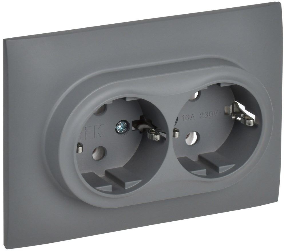 IEK SKANDY Серый Розетка 2-ая с/з без защитных шторок 16А в сборе SK-R08Gr SK-R21-16-K03-F