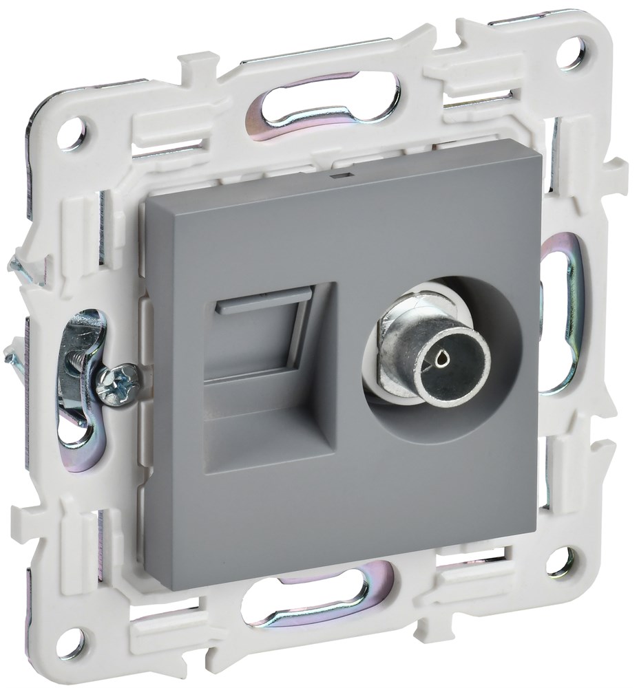 IEK SKANDY Серый Розетка двойная TV+RJ45 кат.5E SK-A14Gr SK-AK20-1-K03