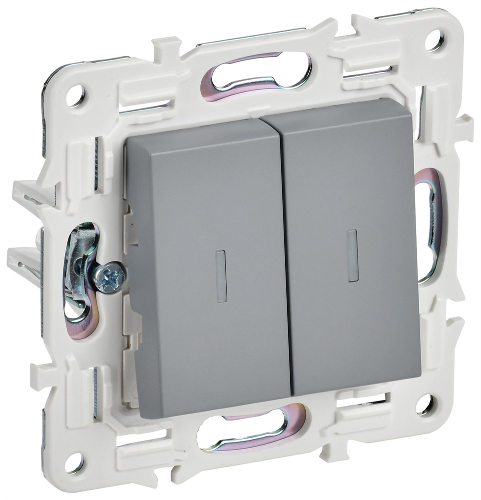 IEK SKANDY Серый Выключатель 2-клавишный с индикацией 10А SK-V09Gr SK-V20-1-10-K03
