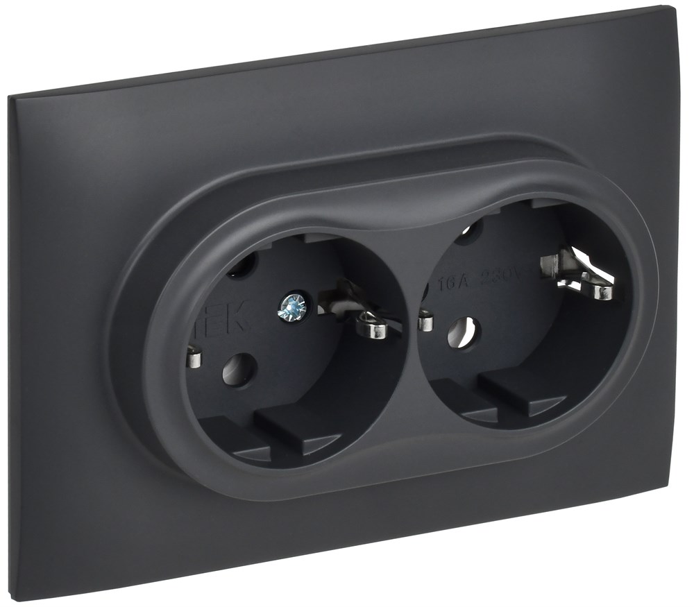 IEK SKANDY Титан Розетка 2-ая с/з без защитных шторок 16А в сборе SK-R08T SK-R21-16-K48-F