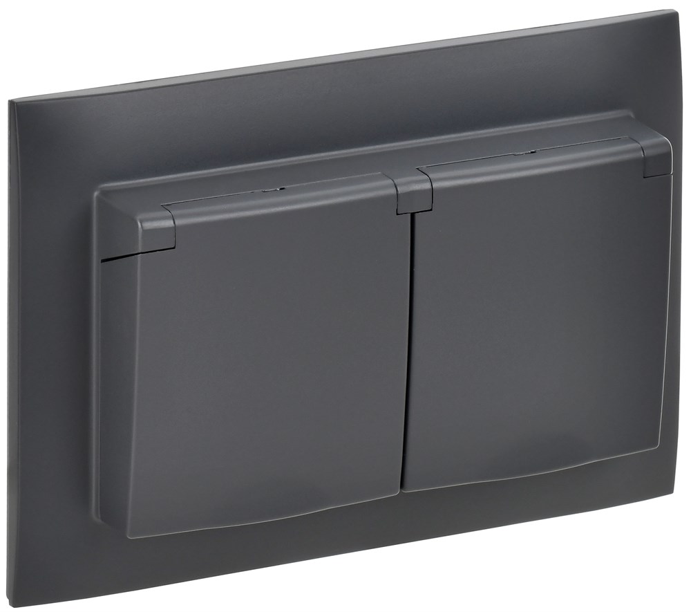 IEK SKANDY Титан Розетка 2-ая с/з с крышкой 16А в сборе IP44 SK-R12T SK-R26-16-44-K48-F
