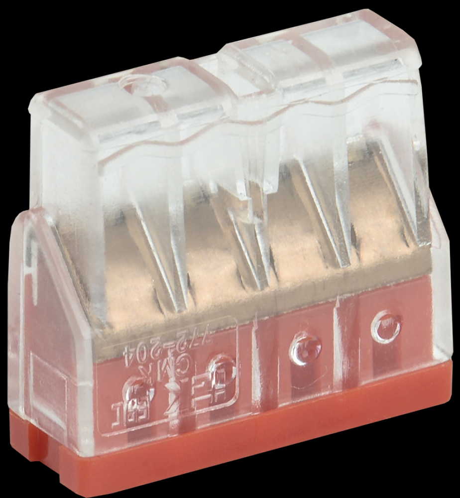 Строительно-монтажная клемма серии 772 в прозрачном корпусе, без контактной пасты, предназначена для однократного подключения одножильных/ многожильных медных проводников.