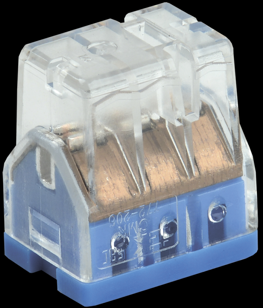 Строительно-монтажная клемма серии 772 в прозрачном корпусе, без контактной пасты, предназначена для однократного подключения одножильных/ многожильных медных проводников.