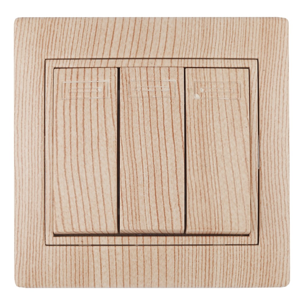 Выключатель тройной, 10А-250В, IP20, СУ, сосна Intro Plano 1-106-11
