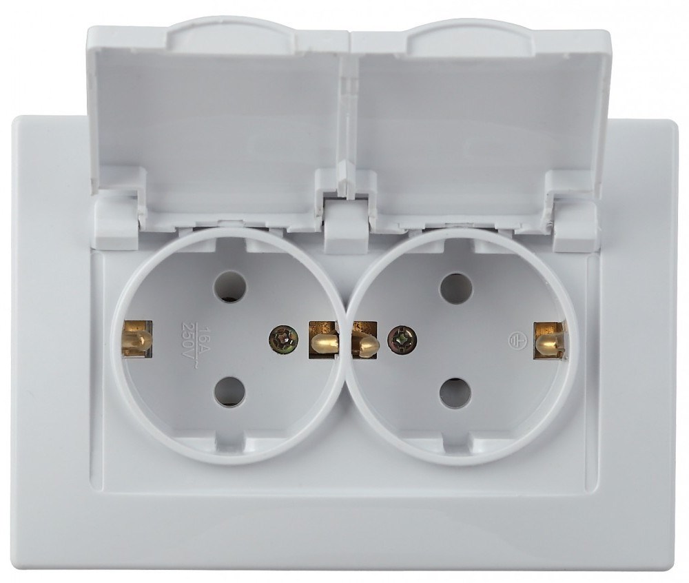 Intro 1-210-01 Розетка 2х2P+E Schuko с крышкой штор., 16А-250В, IP20, СУ, IP44, Plano, белый (10/100/1500) Б0048034