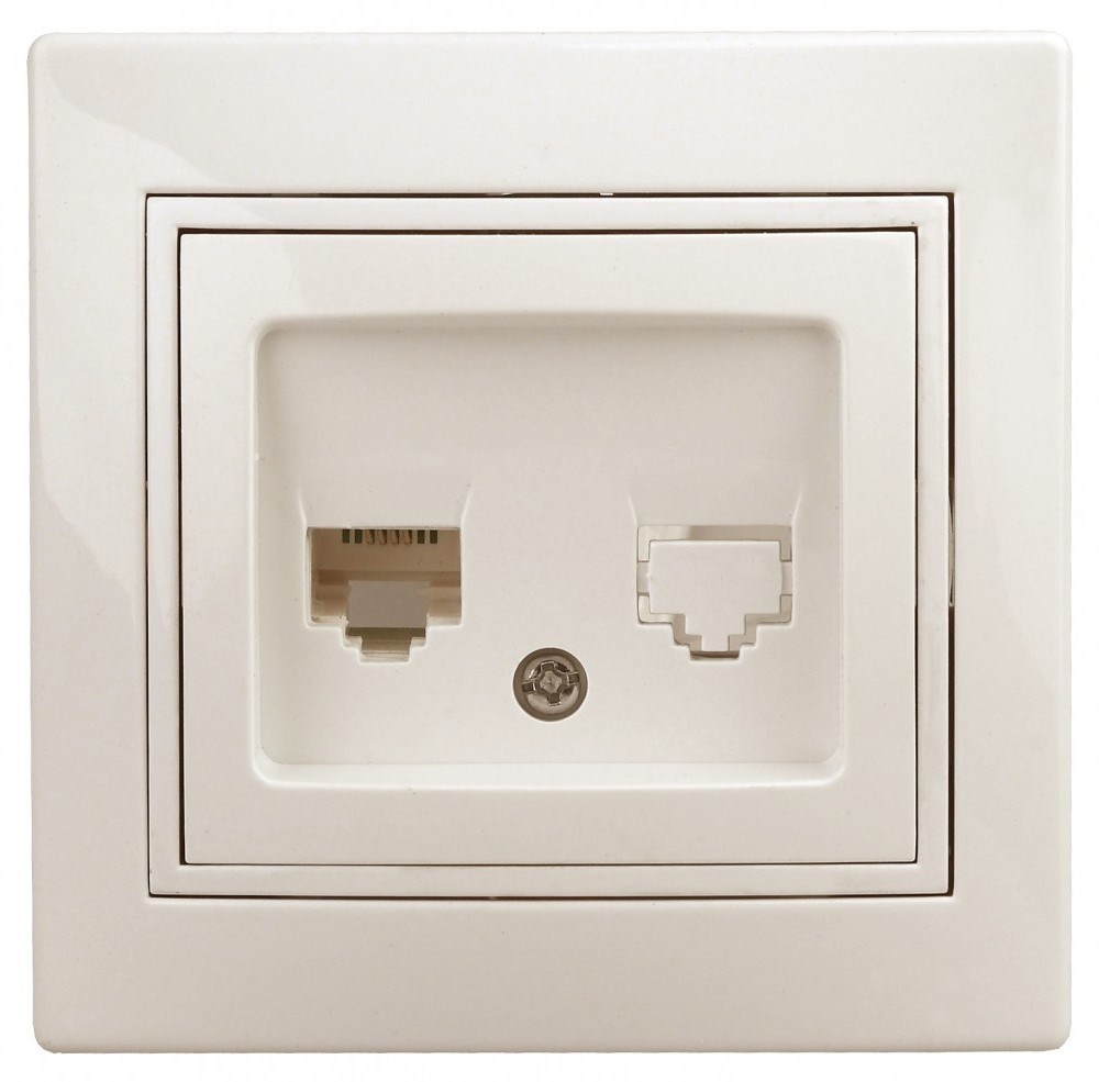 Intro 1-302-02 Розетка телефонная RJ11, IP20, СУ, Plano, сл.кость (10/200/2400) Б0027620