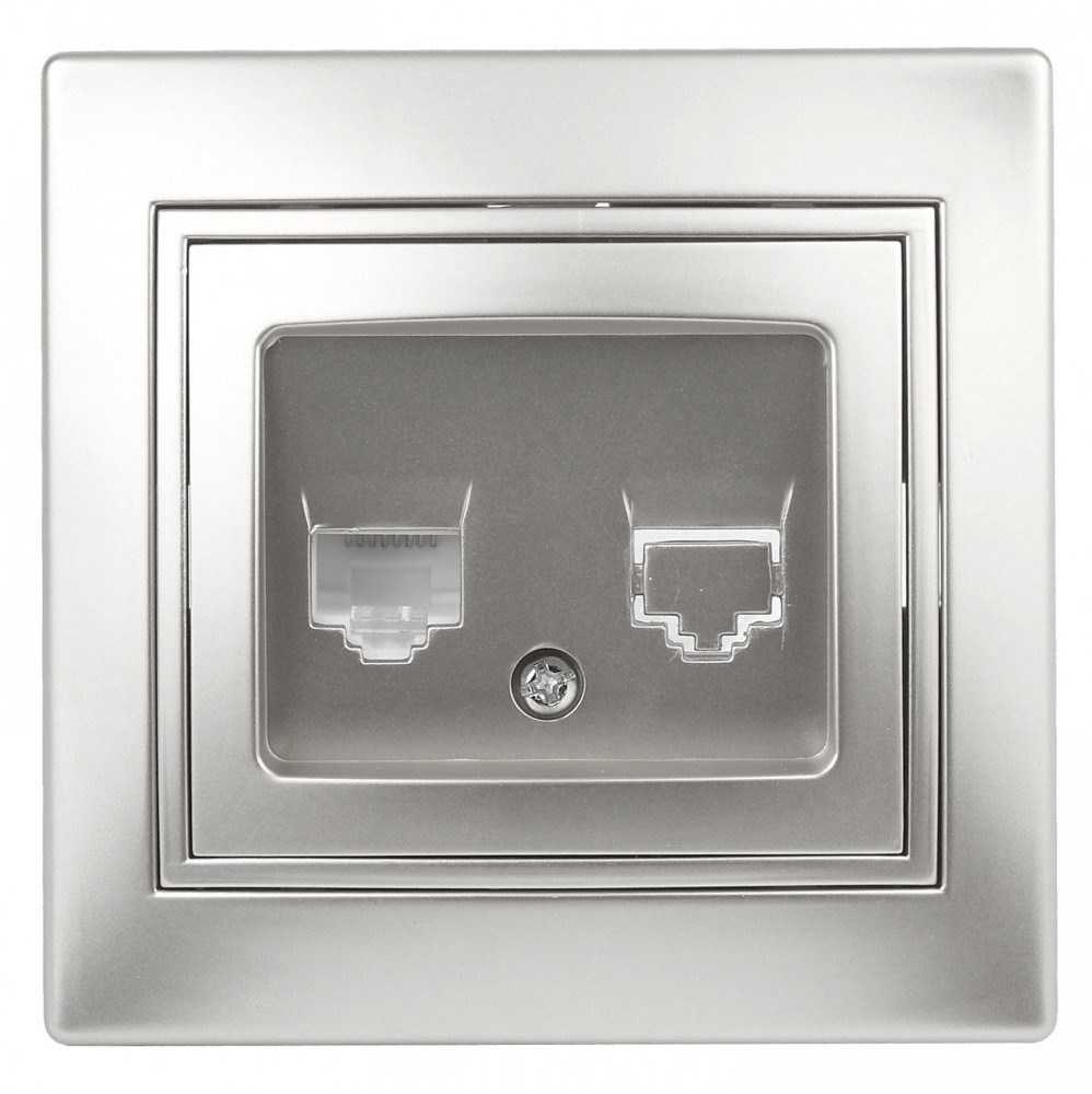 Intro 1-302-03 Розетка телефонная RJ11, IP20, СУ, Plano, алюминий (10/200/2000) Б0030082
