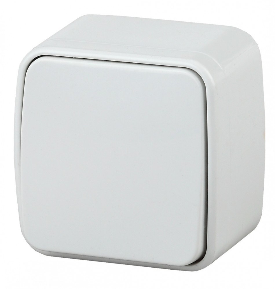 Проходной выключатель (переключатель) 1-клавишный серии Intro Polo открытой установки цвет белый 3-103-01. Номинальные характеристики 10А 250В . Выключатель выполнен из качественного термопласта, стали и латуни, оснащён винтовыми зажимами.