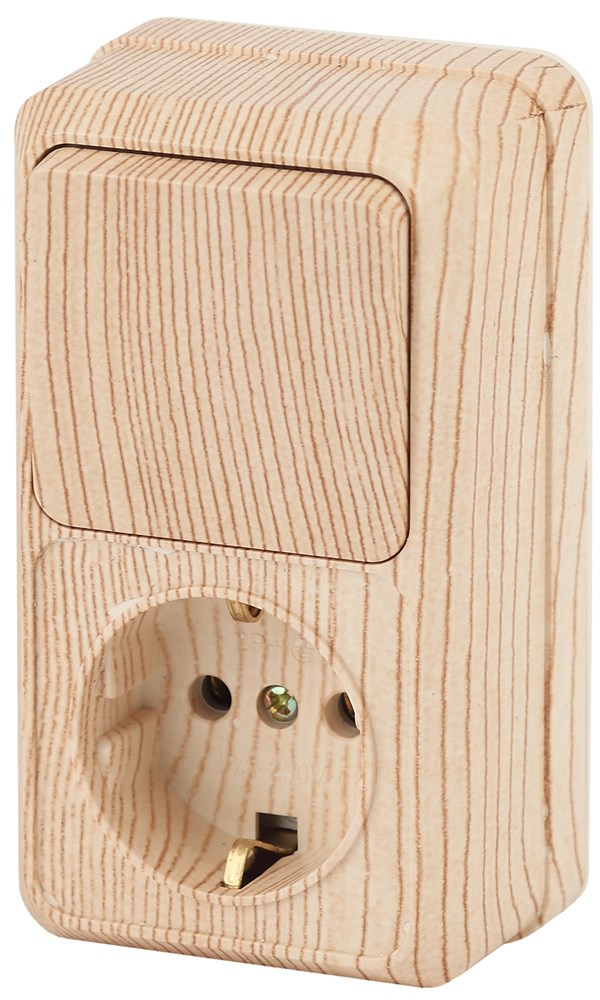 Intro Блок розетка с выключателем Quadro 2-705-11 вертикальный 10(16)А-250В, IP20, ОУ, сосна Б0053888