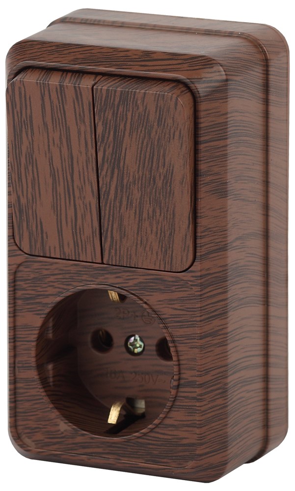 Intro Блок розетка с выключателем Quadro 2-706-10 двойным вертикальный 10(16)А-250В, IP20, ОУ, венге Б0053895
